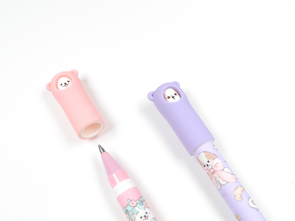 Everyone loves cute little puppies! Write, erase and write again! A gel-ink rollerball with a cheerful design features temperature-sensitive ink that fades with friction. Erase without damaging the paper and start writing again straight away.