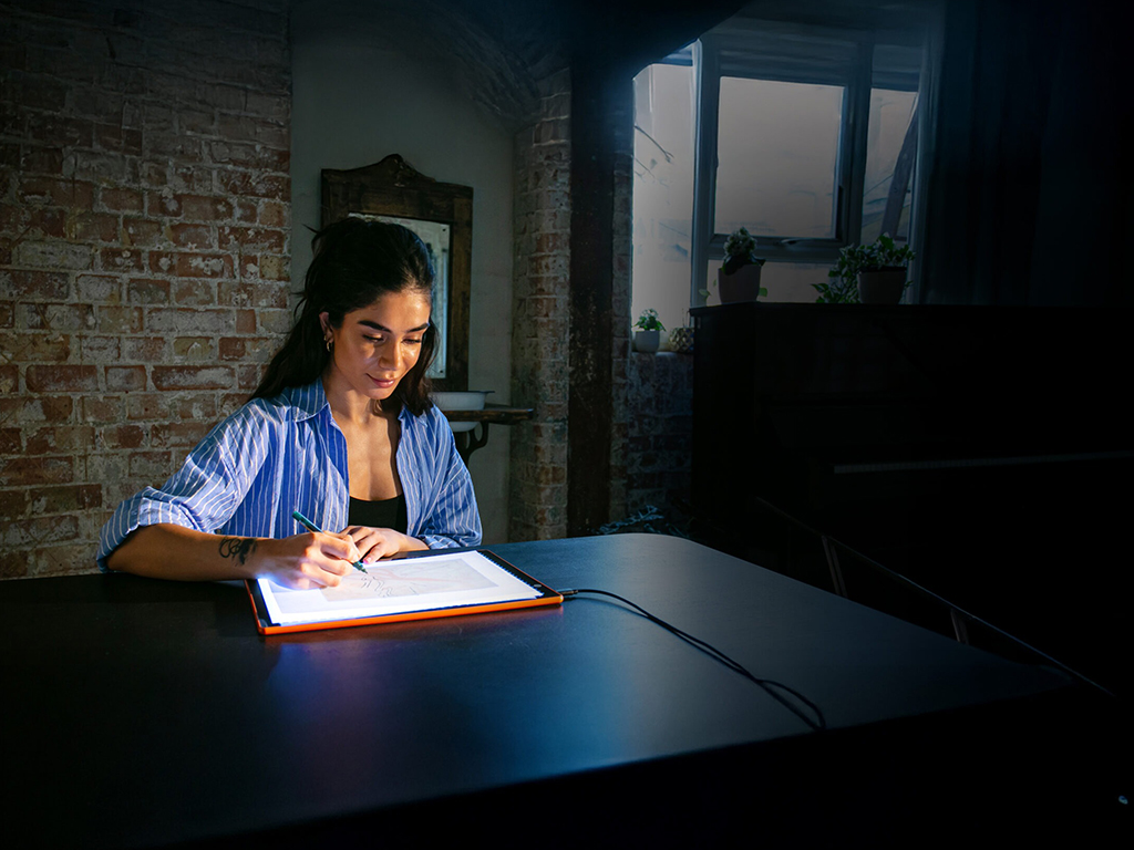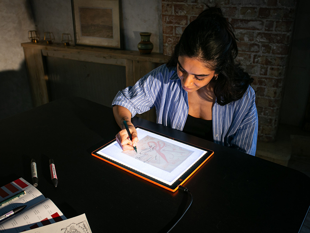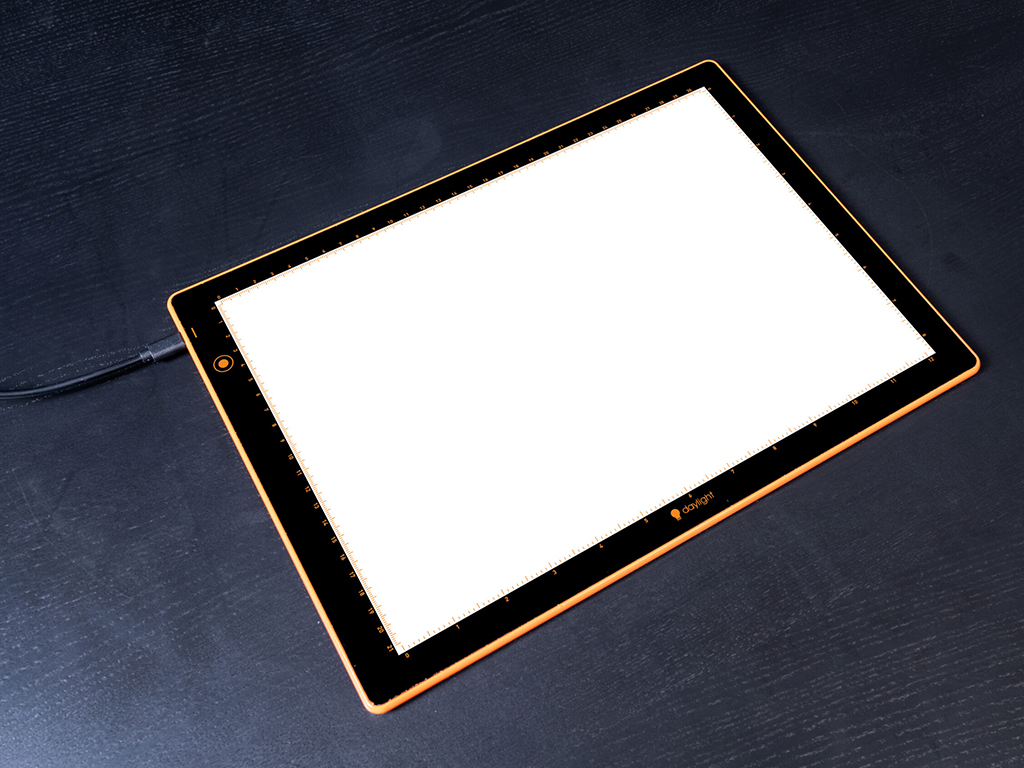 Bright, slim, and lightweight, the Daylight Wafer lightpad is an essential tool for any creative workspace. The Wafer features high-quality LEDs that provide consistent, edge-to-edge illumination. The dimmable light allows you to adjust brightness to suit different paper weights and fabric thicknesses, while the integrated ruler guide—marked in both inches and centimeters—adds precision to your work.