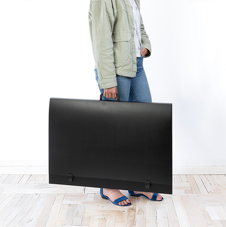 Transporting and protecting your artwork is a daily necessity for artists and students alike. The Viquel Creative Gallery portfolio case is designed to carry your papers and drawings safely and with ease. Made from sturdy polypropylene plastic, it features a rigid handle for comfortable transport and two secure plastic clip closures. Its practical, minimalist design ensures your work stays protected wherever you go.
