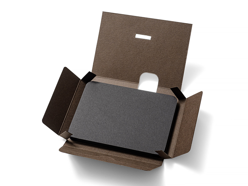 Black postcard blanks with rounded corners, made from FSC-certified recycled paper, provide an interesting surface for creating personal artworks or displaying small photographs. Perfect for markers, pencils, metallic paints, or other creative mediums to craft unique postcards.