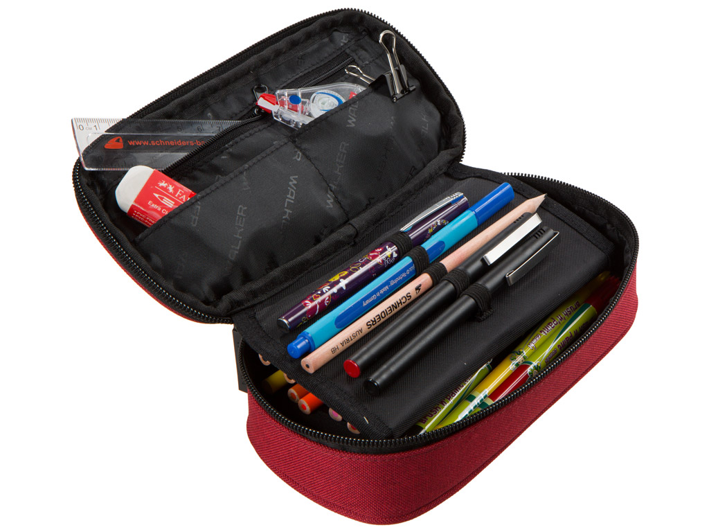 Kokybiškas penalas „Walker“ su vienu užtrauktu uždaromu skyriumi. Pagrindiniame skyriuje yra lankstus dvigubas skirtukas su kilpomis 20 pieštukų, užtrauktuku uždaromas skyrelis ir du atviri skyreliai.