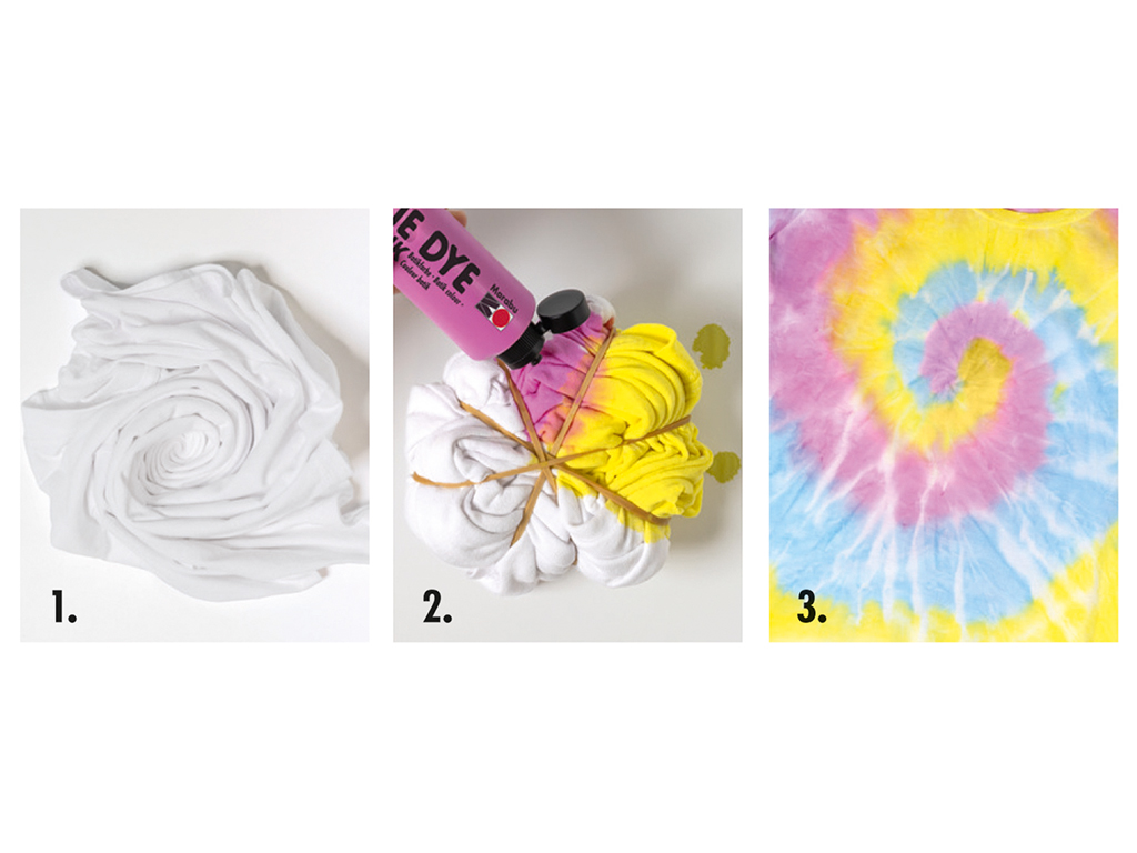 3. Salociet, savijiet vai saņurciet audumu pēc vēlēšanās un nostipriniet to ar gumijām.