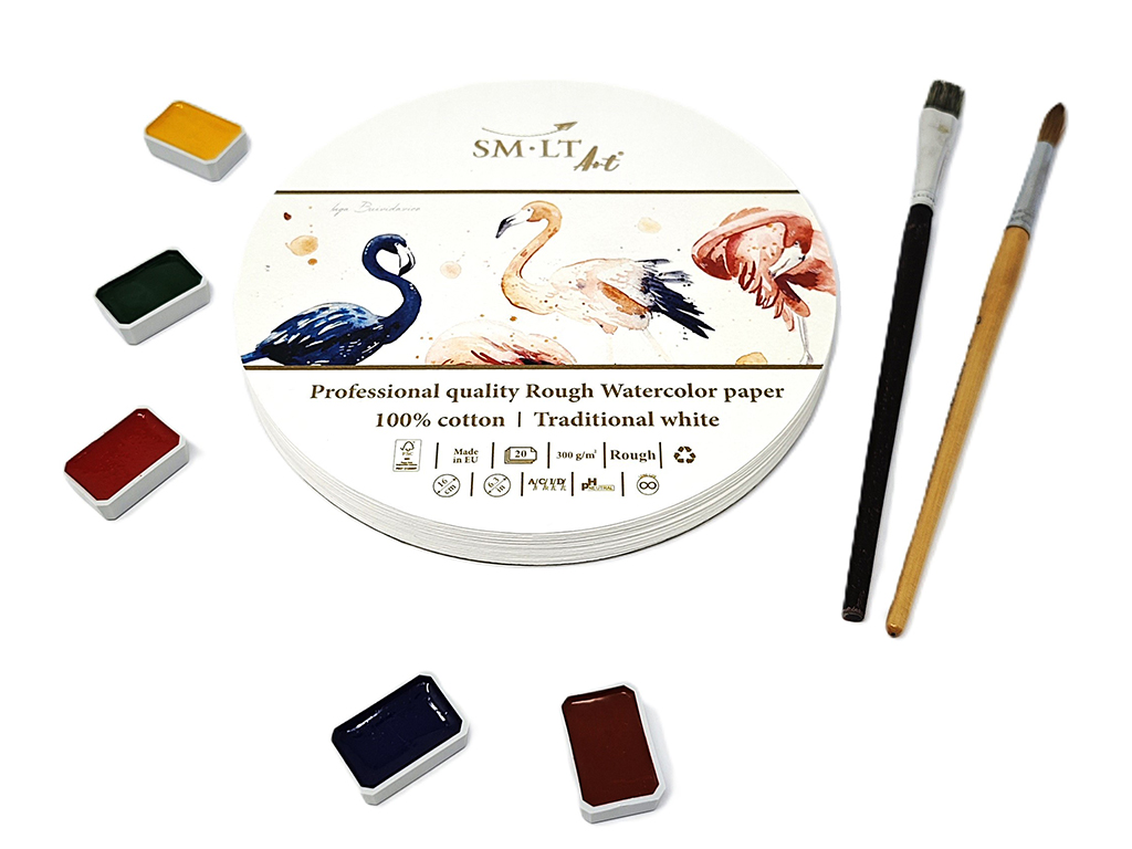 Ümmargused lahtised lehed kõrge kvaliteediga akvarellpaberit, mis on valmistatud 100% puuvillast. Suurepärase värviülekande ja imavusega paber on ideaalne nii professionaalidele kui ka harrastajatele, kes hindavad kvaliteetset, happevaba akvarellpaberit. Ümmargune formaat pakub akvarellimaalile põnevat uut lähenemist ning sobib ideaalselt nii akvarelli, tindi, guaši kui ka muude tehnikate jaoks.