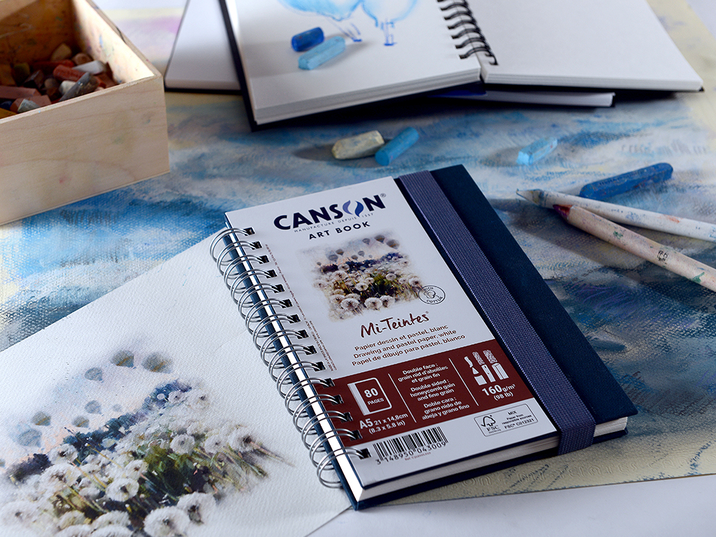 Canson Mi-Teintes on oma suurepäraste omaduste, tekstuuri ja kvaliteedi abil saavutanud ülemaailmse tunnustuse ning on armastatud paljude professionaalide poolt. Paber on želatiiniga massis liimitatud, mis piirab pigmentide imendumist ning toob sealjuures värvid esile. Canson Mi-Teintes paber on valmistatud rohkem kui 50% ulatuses puuvillakiust, mis lisab sellele vastupidavust nii ajas kui ka käsitlemisel. Joonistajate seas kõrgelt hinnatud Canson Mi-Teintes paberil on üks pool tugevama, kärjemustrit meenutava, tekstuuriga ning teine pool siledam. Sobib suurepäraselt erinevate tehnikate jaoks nagu pastell, süsi, sangviin, grafiit ning isegi akvarell ja guašš. Elegantse kummipaelaga sulgetav kõvakaaneline pastellpaberiplokk on mugav kaasas kanda. Sisekaanel olev hoiutasku aitab hoiustada väärtuslikke mälestusi ja märkmeid.
